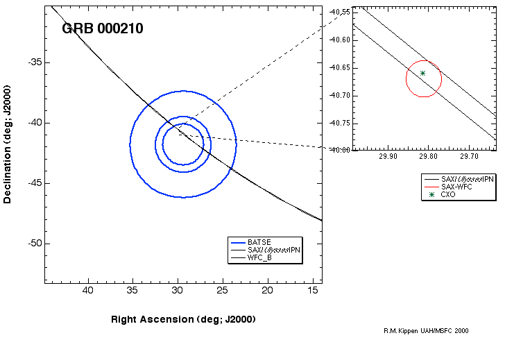 | GRB_000210 | n/a | GIF | PS | GIF | PS | Untriggered burst detected by SAX-WFC, Konus, Ulysses, and Chandra. |