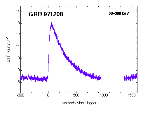 | GRB_971208 | 6526 | GIF | PS | GIF | PS | The longest, smoothest single GRB episode ever observed by BATSE (see IAUC); also detected by Ulysses. |