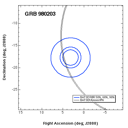 | GRB_980203 | 6587 | GIF | PS | GIF | PS | Location scanned by RXTE-PCA (See GCN Notice); detected by Ulysses |