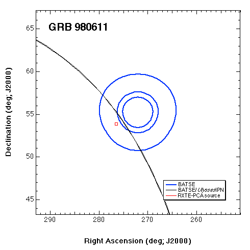 | GRB_980611 | 6816 | GIF | PS | GIF | PS | Location scanned by RXTE-PCA (See GCN Notice); detected by Ulysses |