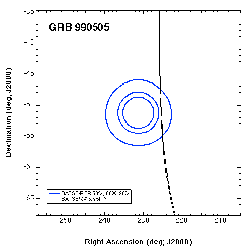 | GRB_990505 | 7548 | GIF | PS | GIF | PS | Detected by Ulysses. |
