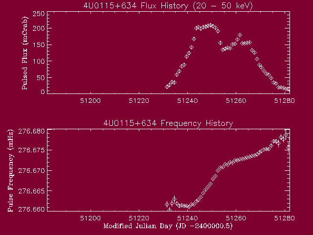 4U0115+634 Flux/Frequency History (recent)