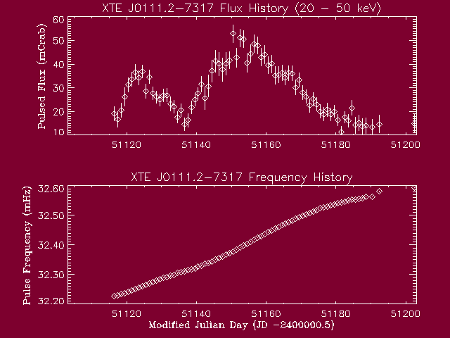 XTE J0111.2-7317 Flux/Frequency History (recent)